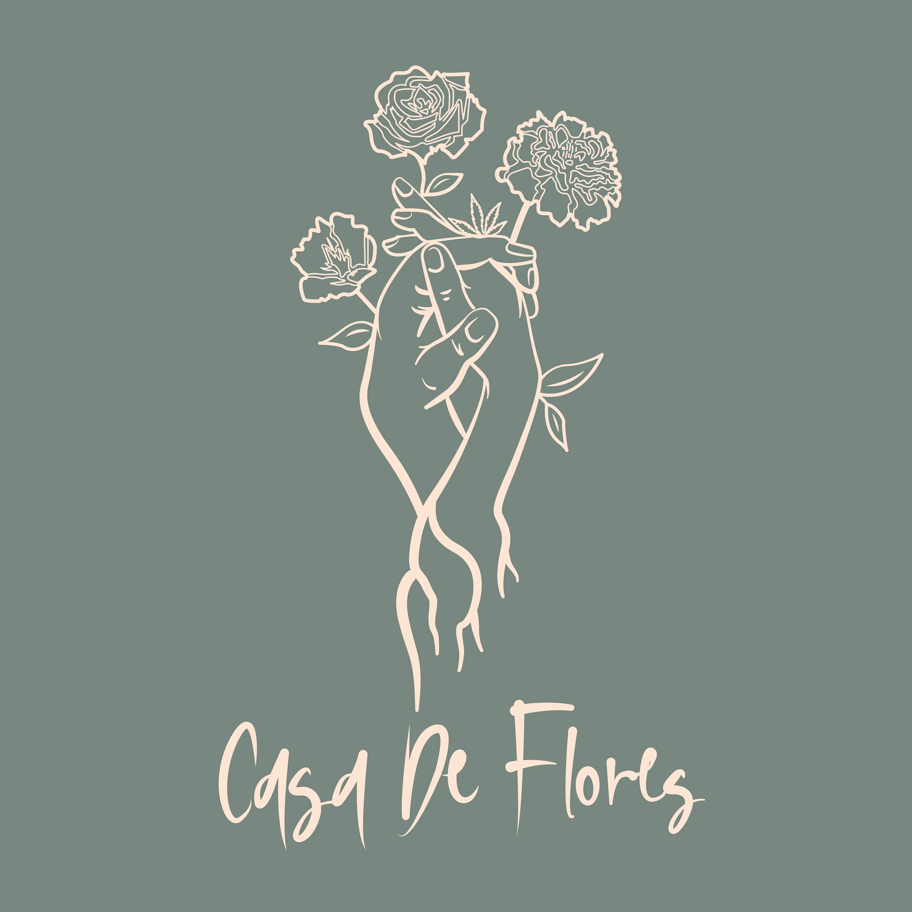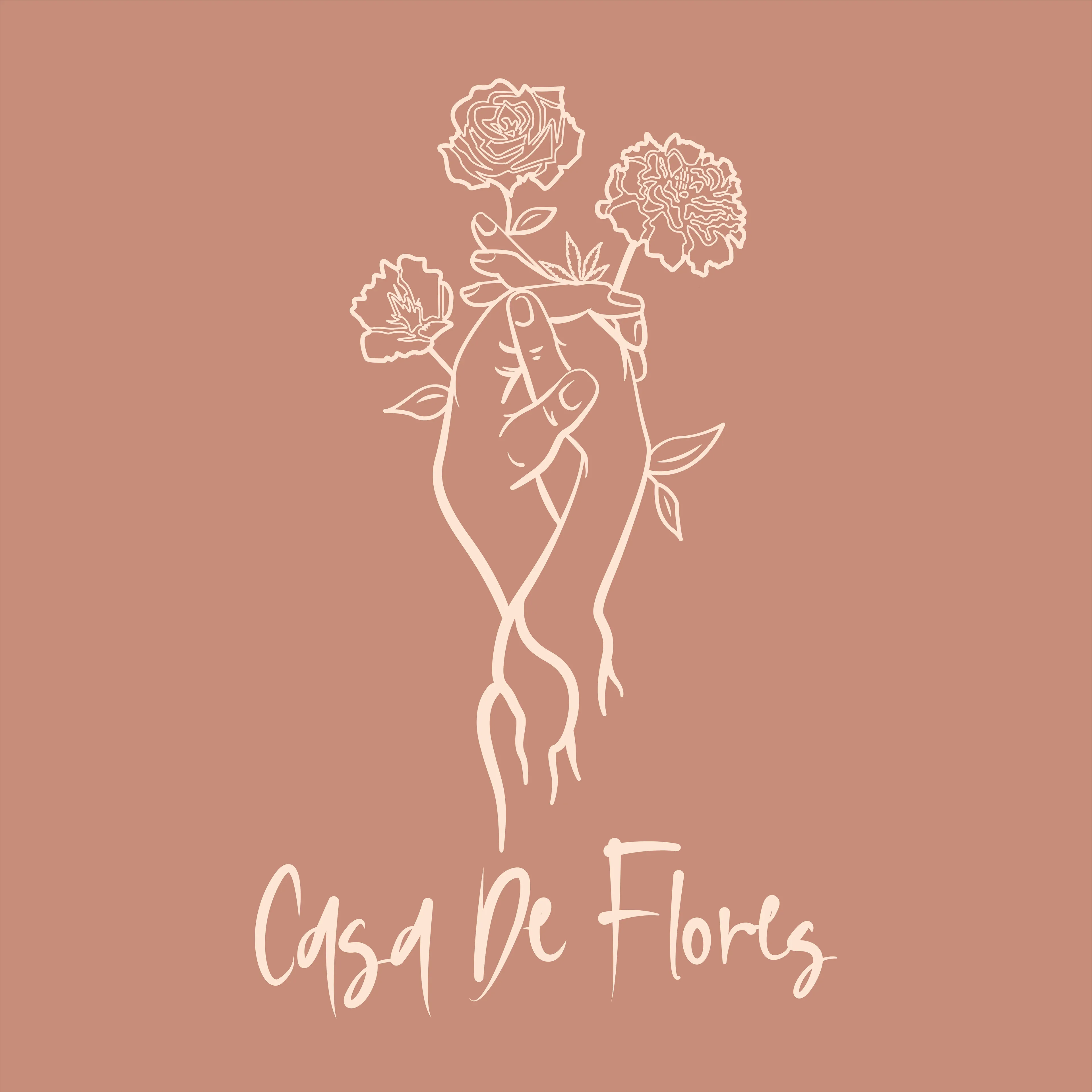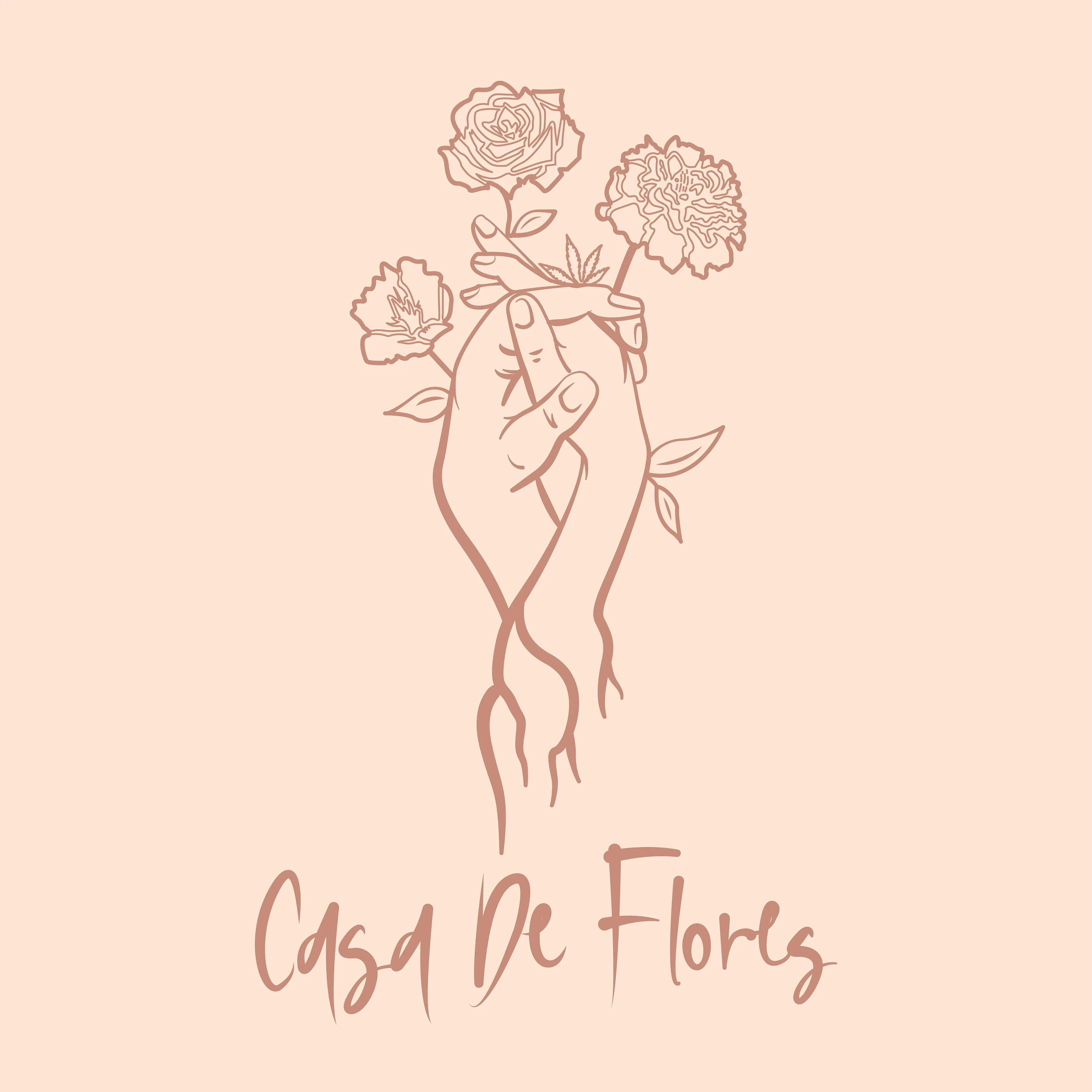 Wordmark and logomark for Casa De Flores. Rooted in warmth and florals — a bilingual brand identity with a timeless feel.